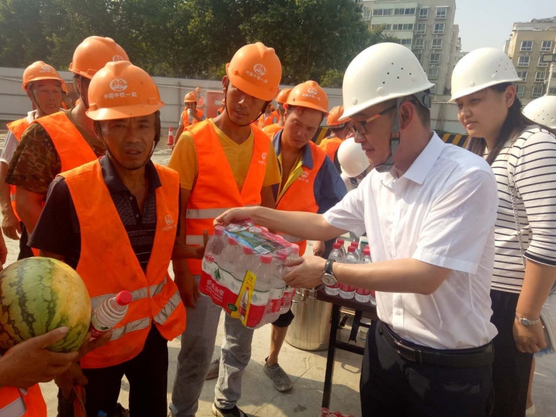 8月4日,工程管理部代表公司,为地铁1号线试验段史家湾站的参建者们送去绿豆汤、藿香正气水等降温食、用品。