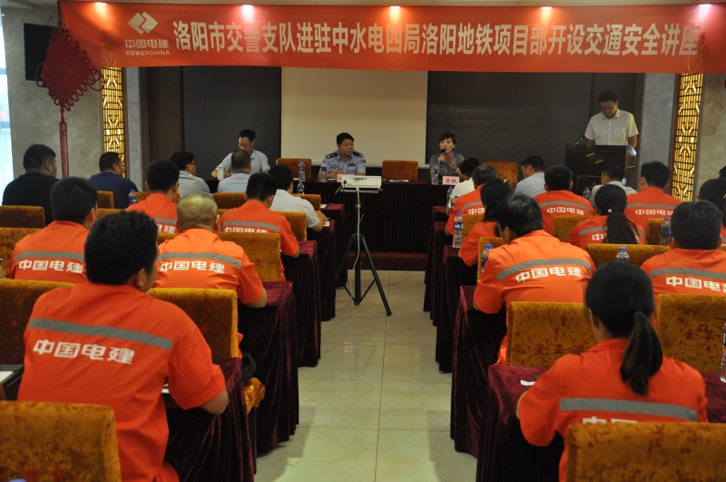 8月4日,市公安局交警支队走进地铁1号线中水电四局项目部,开设交通安全讲座,进行普法宣传。