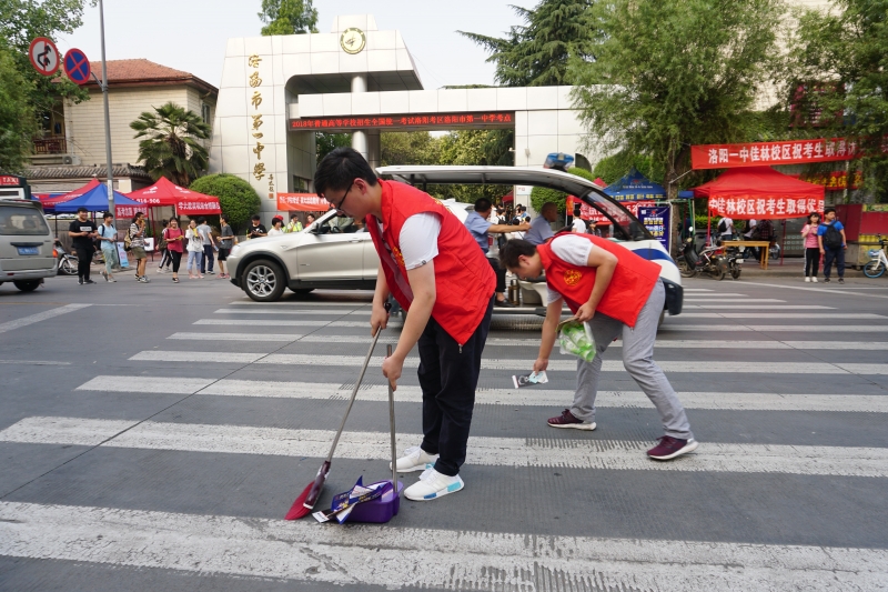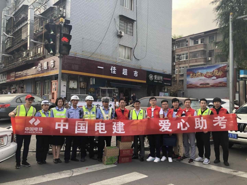在市一中考点,公司志愿者携手中国电建志愿者给值守在周围的交警送去饮用水等降温用品,并现场解答了市民在轨道交通项目建设、订单班招生等方面的疑惑,考试结束后还对考点周围的垃圾进行了清扫。