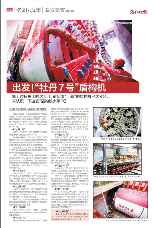 20日,“牡丹7号”盾构机从1号线长安路站始发向上海市场站掘进,加上本月已经始发掘进的“牡丹14号”和“牡丹16号”两台盾构机,7月共始发掘进的3台盾构机成为我市地铁1号线项目开工建设以来盾构始发最密集的一个月,创下单月历史之最。这一重大进展,受到媒体格外关注,并大篇幅、多角度的对1号线盾构区间建设集中予以呈现。