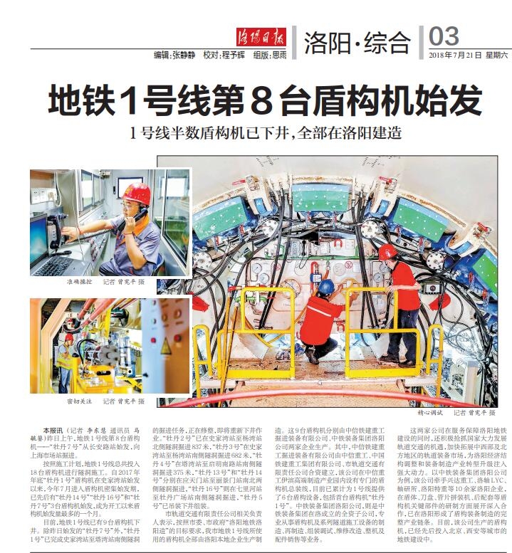 7台盾构机累计3739.5米的掘进量约占1号线盾构区间总长的11%,这是继1号线掀起主体结构建设热潮后掀起的又一个建设热潮。目前,1号线有3座车站已经完成主体结构建设,12座车站正加快主体结构建设。随着9台盾构机的陆续下井,我市已经形成了盾构装备制造的完整产业链,“洛阳地铁洛阳造”优势日益凸显,无疑将对我市抢抓国家发展轨道交通机遇,加快拓展中西部及北方地区轨道装备市场和加速洛阳经济结构调整及装备制造产业转型升级,辐射带动相关产业发展等方面带来利好影响。