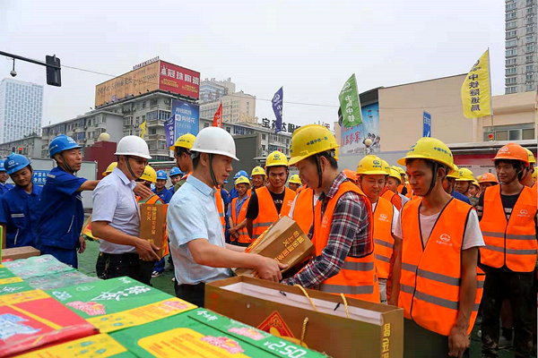 活动当日,集团公司党群工作部副部长、工会副主席李海亮,建管公司副经理刘君等一行来到施工现场,看望慰问辛勤工作、默默奉献的地铁建设者们,对他们为洛阳地铁工程建设做出的巨大贡献表示最衷心的感谢,并叮嘱参建单位要保障好高温一线职工的安全、健康,确保职工平安度夏。